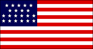 ABOVE: The 21-Star Flag became the offical U.S. flag on July 4th, 1819, with the admission of Illinois to the Union, December 3, 1818. This is the flag that would have flown at the time the Sibley Company Cabin was constructed. James Monroe was our fifth president. The flag changed one year later to the 23-Star Flag. Beginning in 1818, when Pontiac was founded, it was decided that only stars would be added for new states, versus a star and stripe as had been done previously. At that time, the flag reverted from fifteen stripes, on the Star Spangled Banner flag of 1814, to thirteen stripes, representing the thirteen founding colonies.