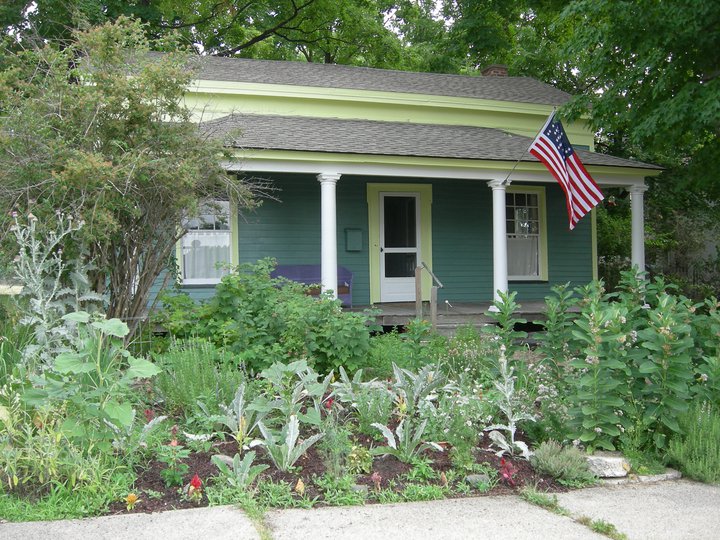 The Sibley Company Cabin, an 18x20' structure is at the center of this old place and was virtually identical to the one in the photo above. The early frame cabin was built by Solomon and Sarah Sibley, as a Pontiac Company resource. They provided the primary financing for the settlement of the Village of Pontiac and the construction of its first structures, including the first log house, mercantile, mills and this cabin. The house has seen many changes through the years, including the addition of another house, circa 1840, that was moved to this site in 1866 or 67 by George Hoyt and attached to the cabin. The Hoyt family made their home here for 111 years, teaching music and dance from here for 101 of those years. But the significance of this crooked and stand-alone structure existed long before the Hoyts came to town.